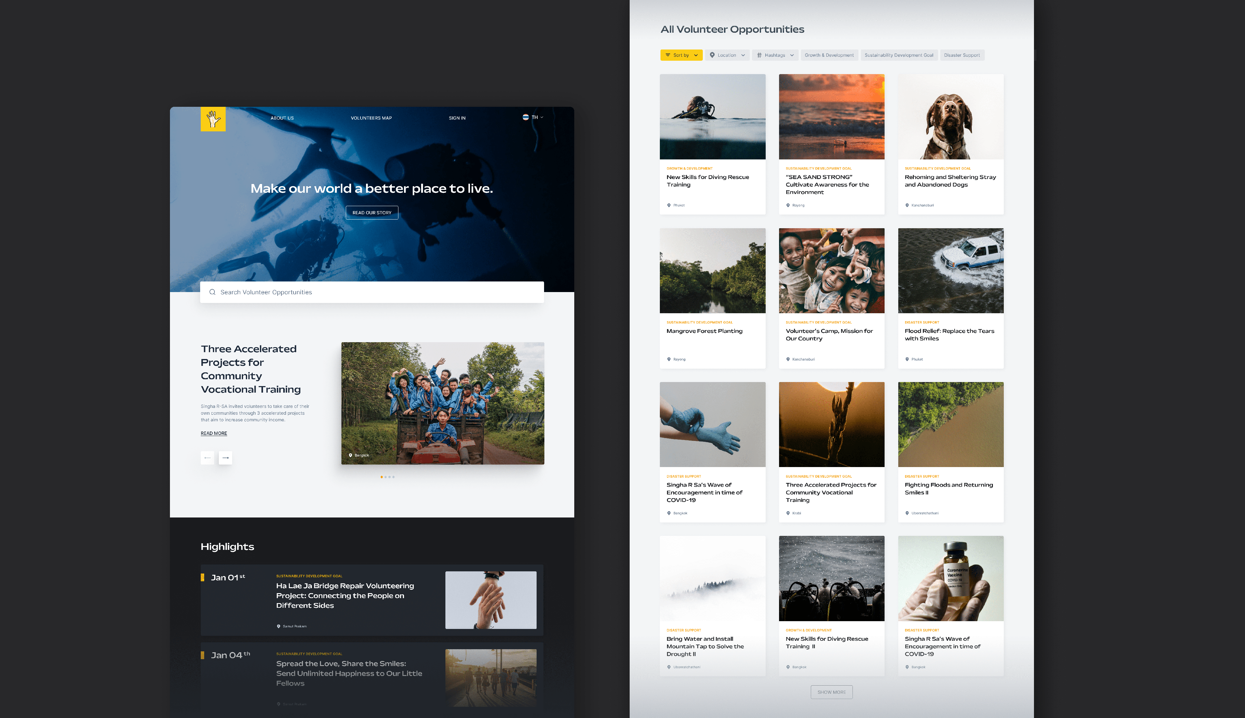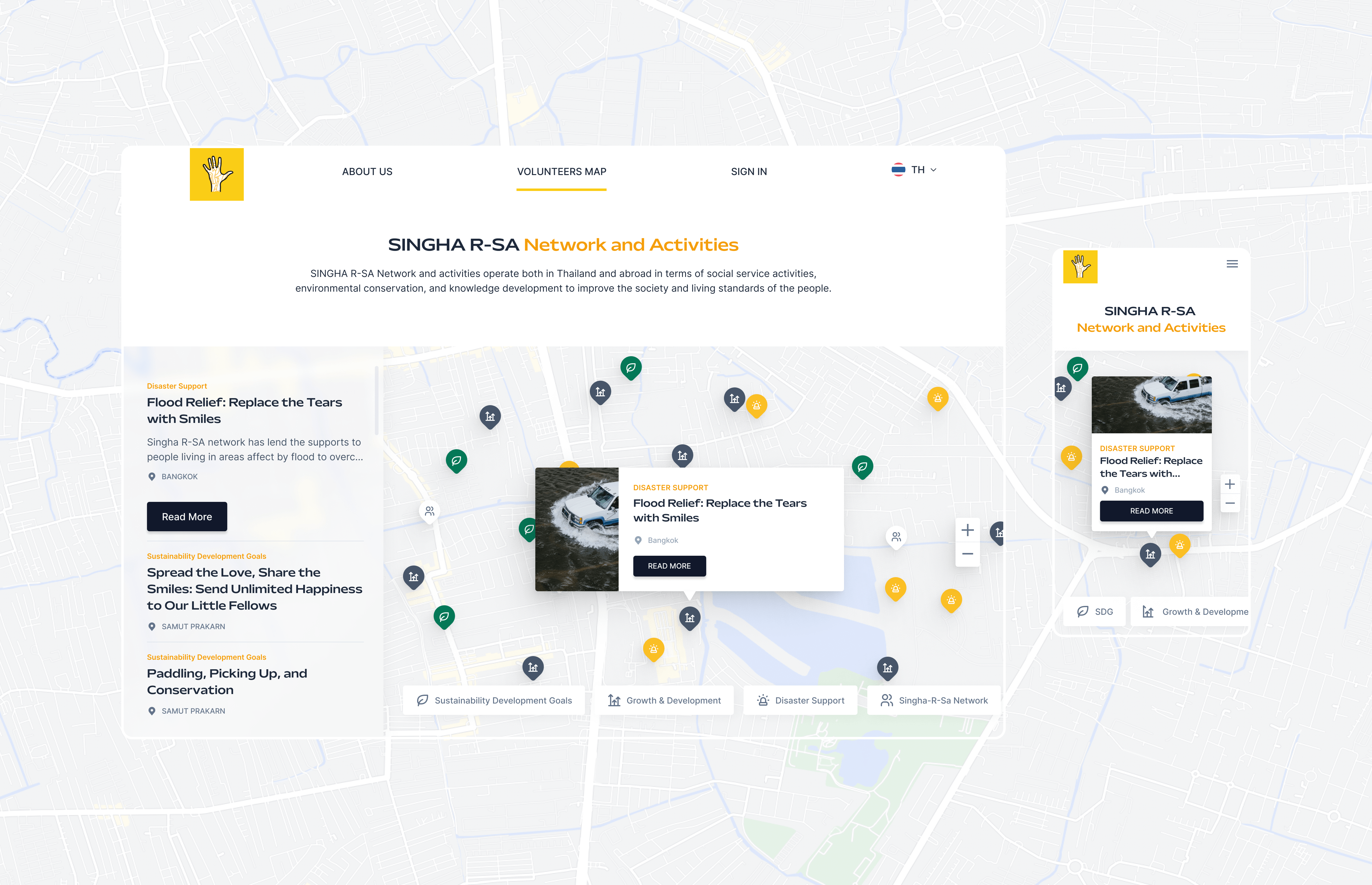 Founded by Boon Rawd Brewery, one of the largest and well-known beverage company in Thailand, Singha R-SA is the community aims to connect and provide volunteer opportunities to the young generations to contribute to societies. Within a small team, visual design as well as UX of the website was revamped, starting from UX Audit to pinpoint usability issues, provide design solutions, and implement the design.